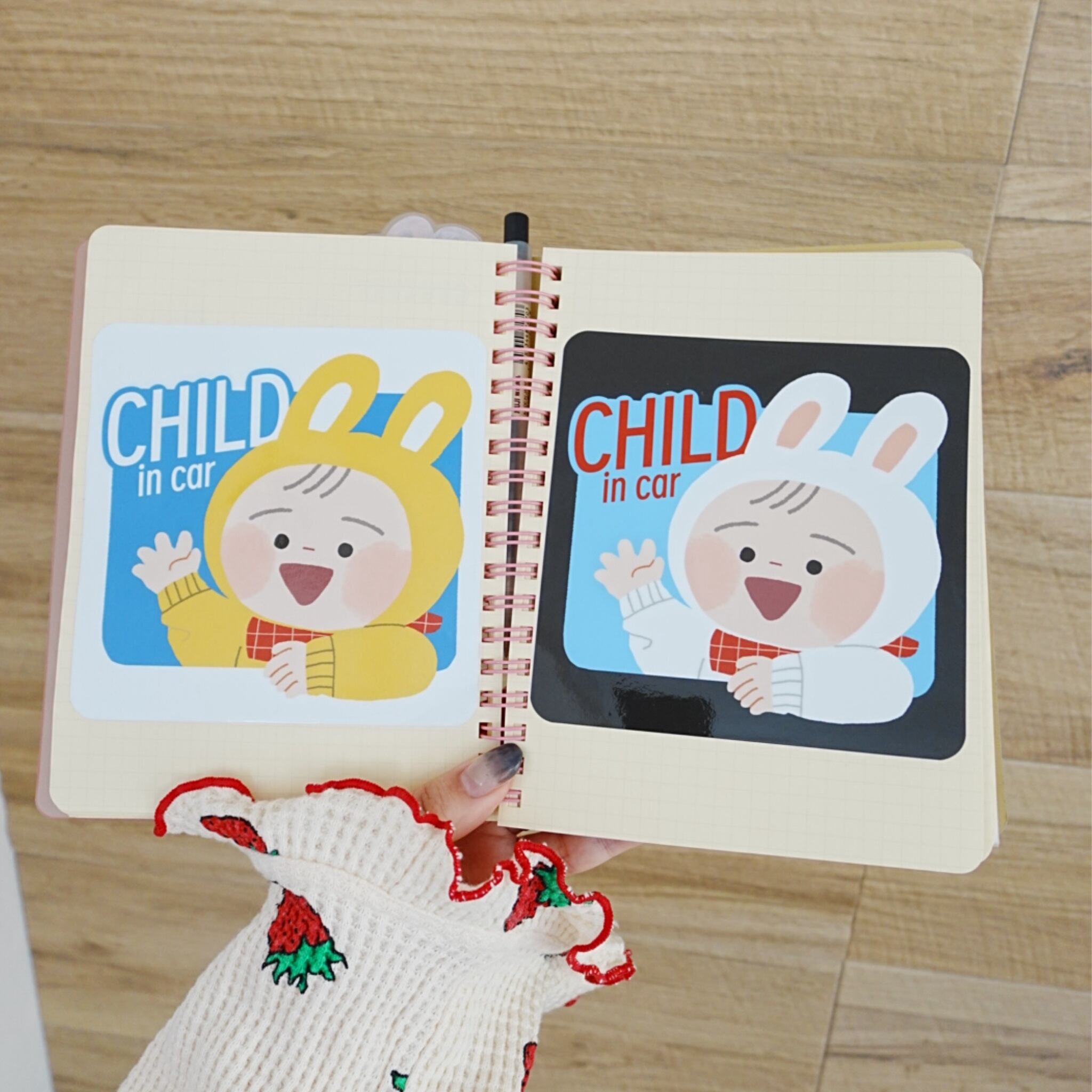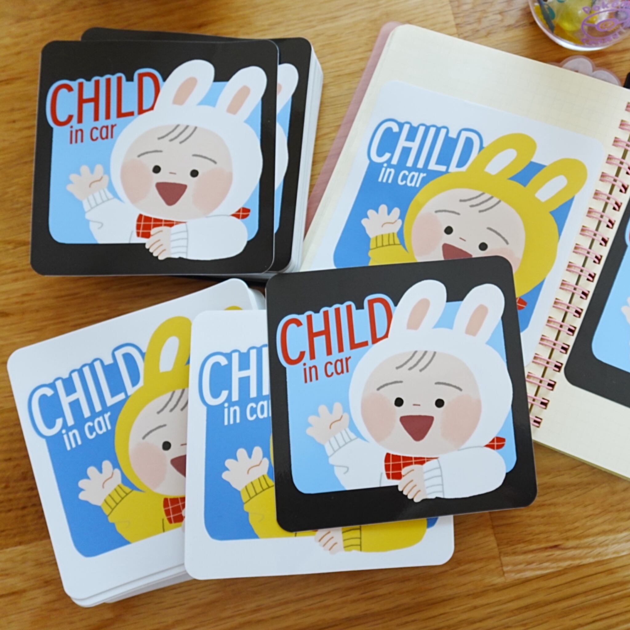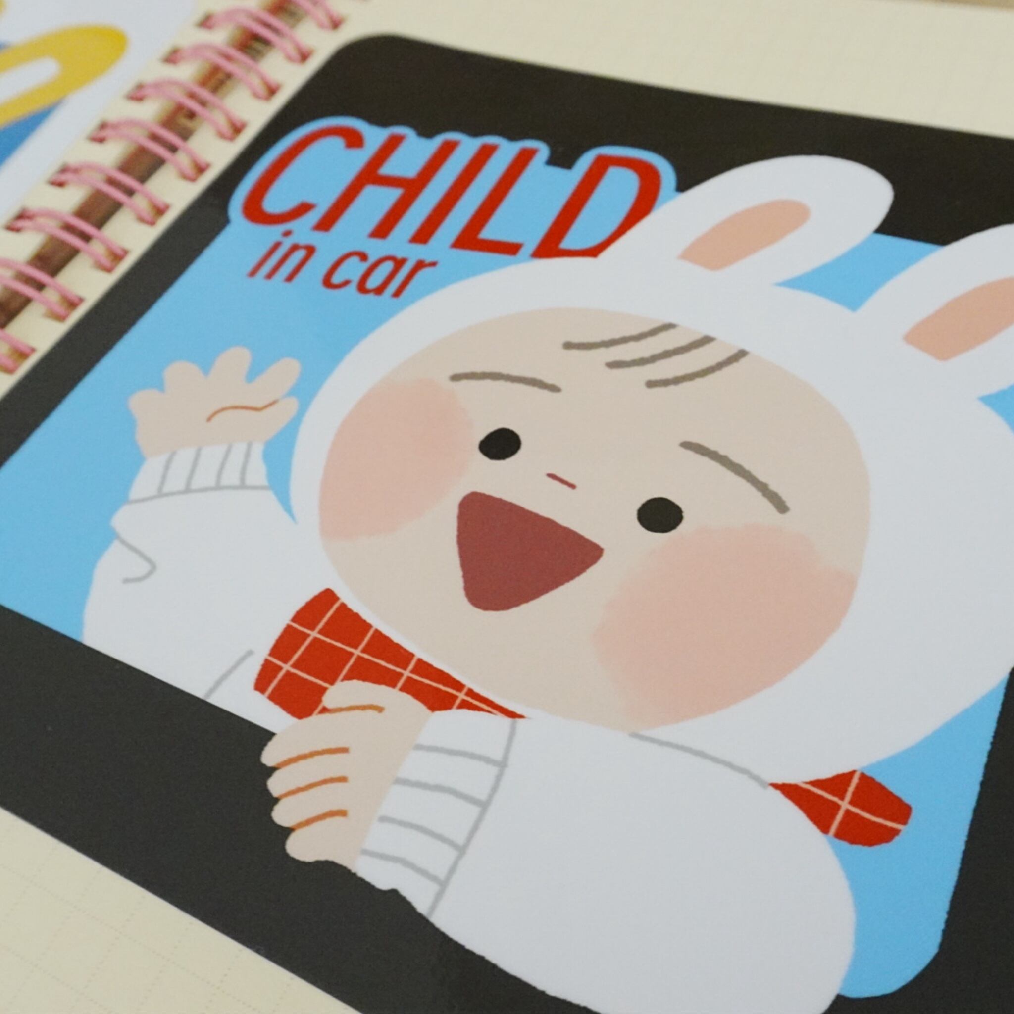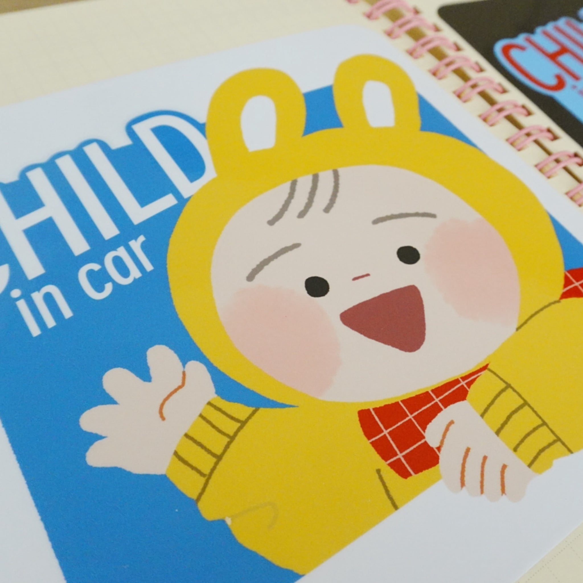後続車に小さなお子様が乗っていることを、くっきり可愛いイラストでお知らせします。