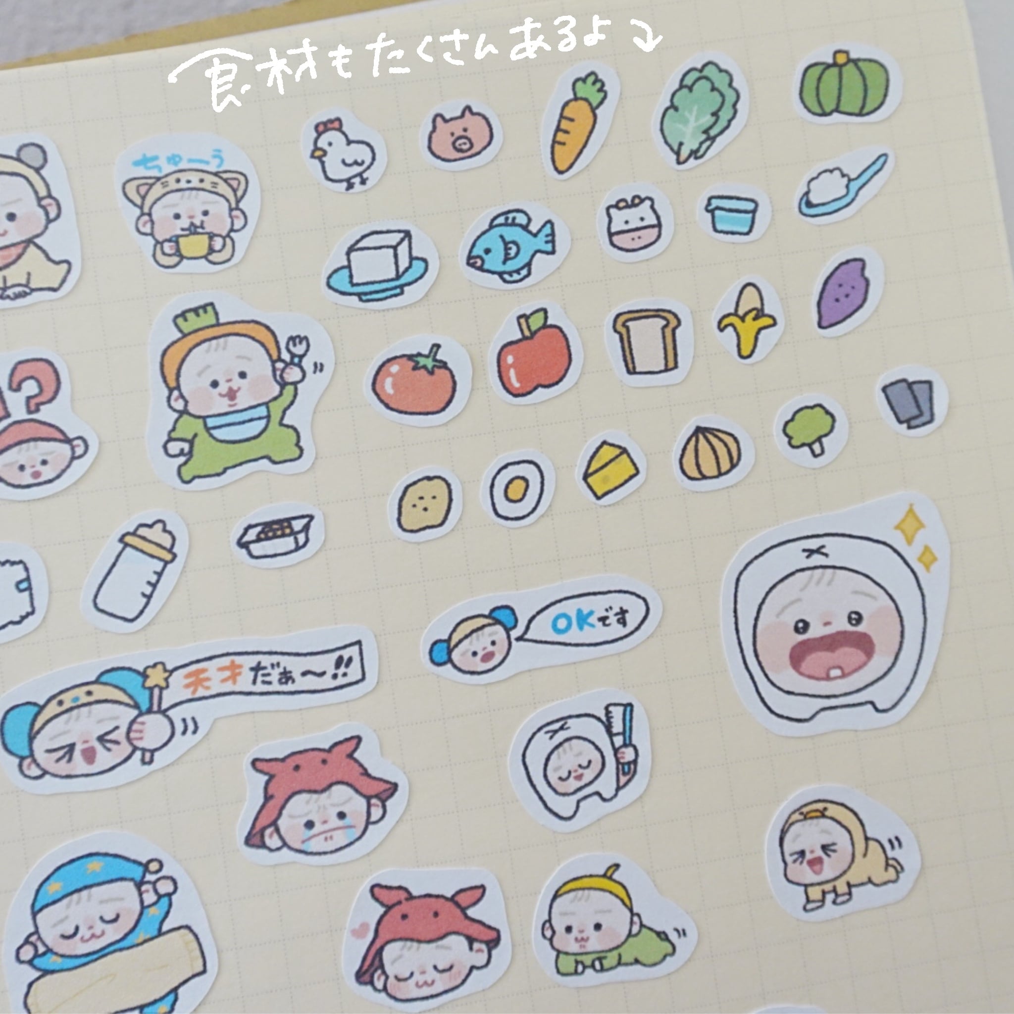 【84枚カット済】育児日記やアルバムに♪ ゆるかわベビーミニミニシール